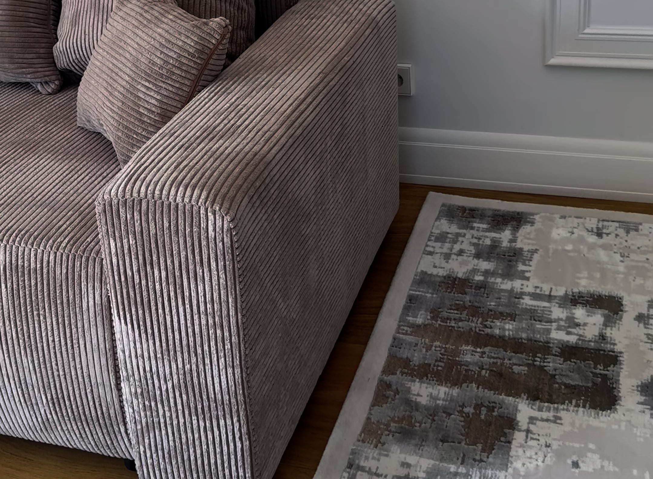 ABRIAMO ir mīksts, elastīgs audums ar modernu, smalki reljefu struktūru. Šis audums lieliski iederas skandināvu, modernā un minimālisma interjerā.